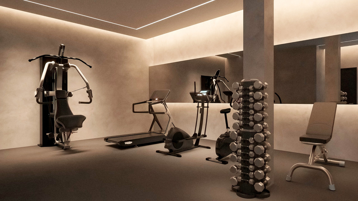 Dom rozłożony jest na trzech kondygnacjach i obejmuje luksusowe spa z podgrzewanym basenem krytym, sauną fińską, łaźnią turecką, w pełni wyposażoną siłownią, pokojem gier, barem i piwnicą na wino. Dwa szklane kostki i okna od podłogi do sufitu tworzą jasne, otwarte przestrzenie wypełnione naturalnym światłem.